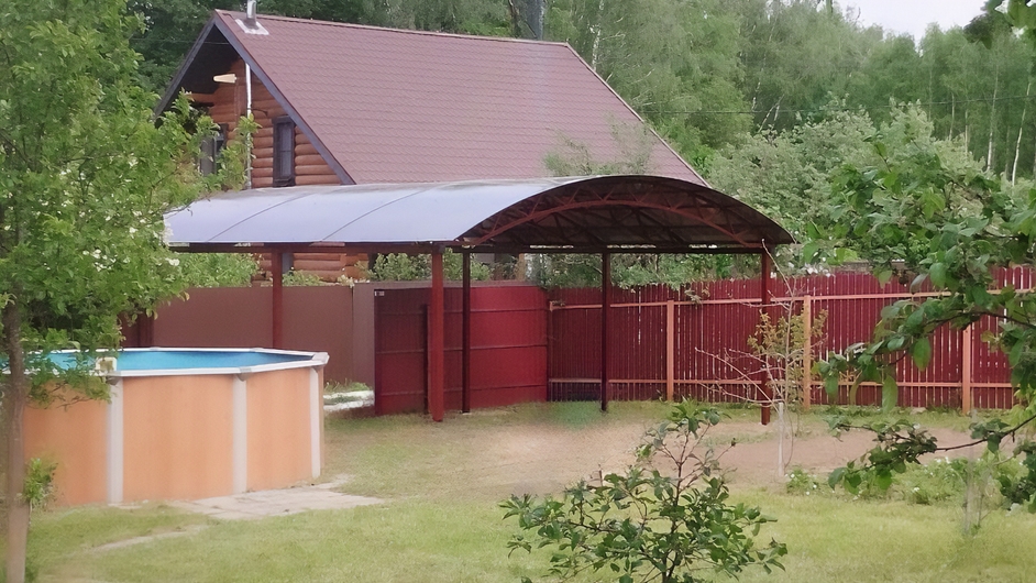 Арочный навес из поликарбоната для зоны отдыха на даче Арт-662