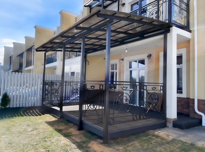Односкатный навес-пристрой с ковкой и крышей из поликарбоната Арт-673