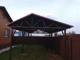 Двускатный коричневый навес с крышей из профлиста для загородного дома Арт-733