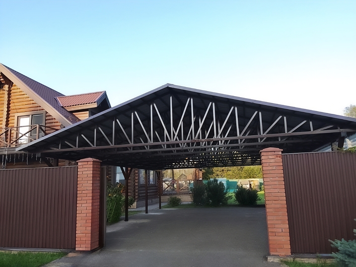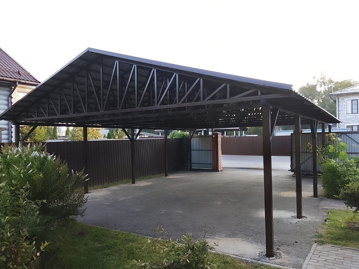 Двускатный навес для авто с крышей из профлиста Арт-708