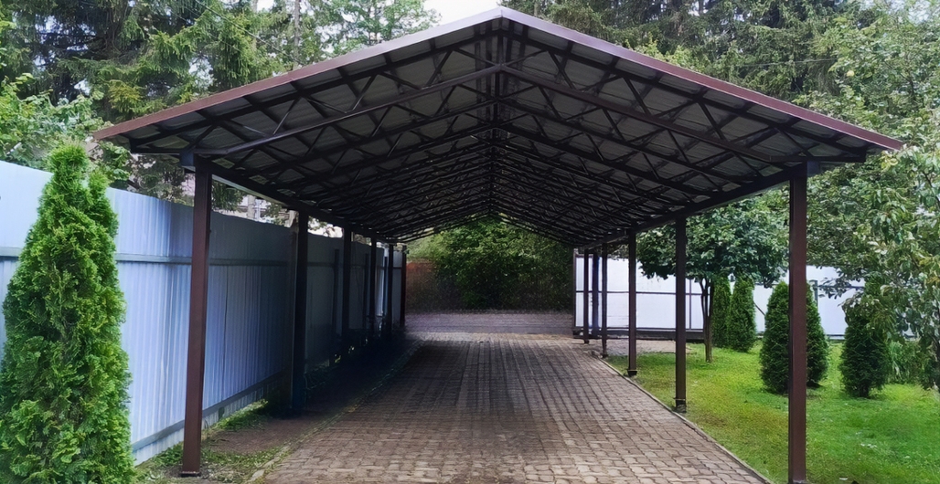 Двускатный навес из профнастила для стоянки автомобиля Арт-695