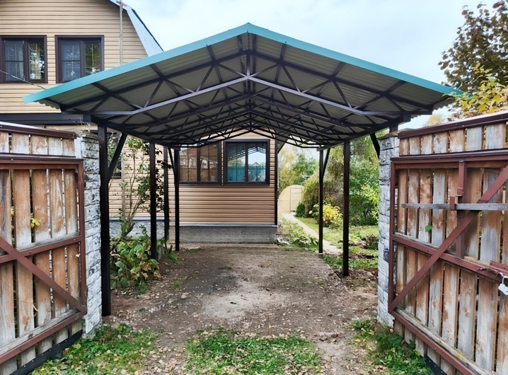 Двускатный навес с крышей из профлиста для дачного дома Арт-712
